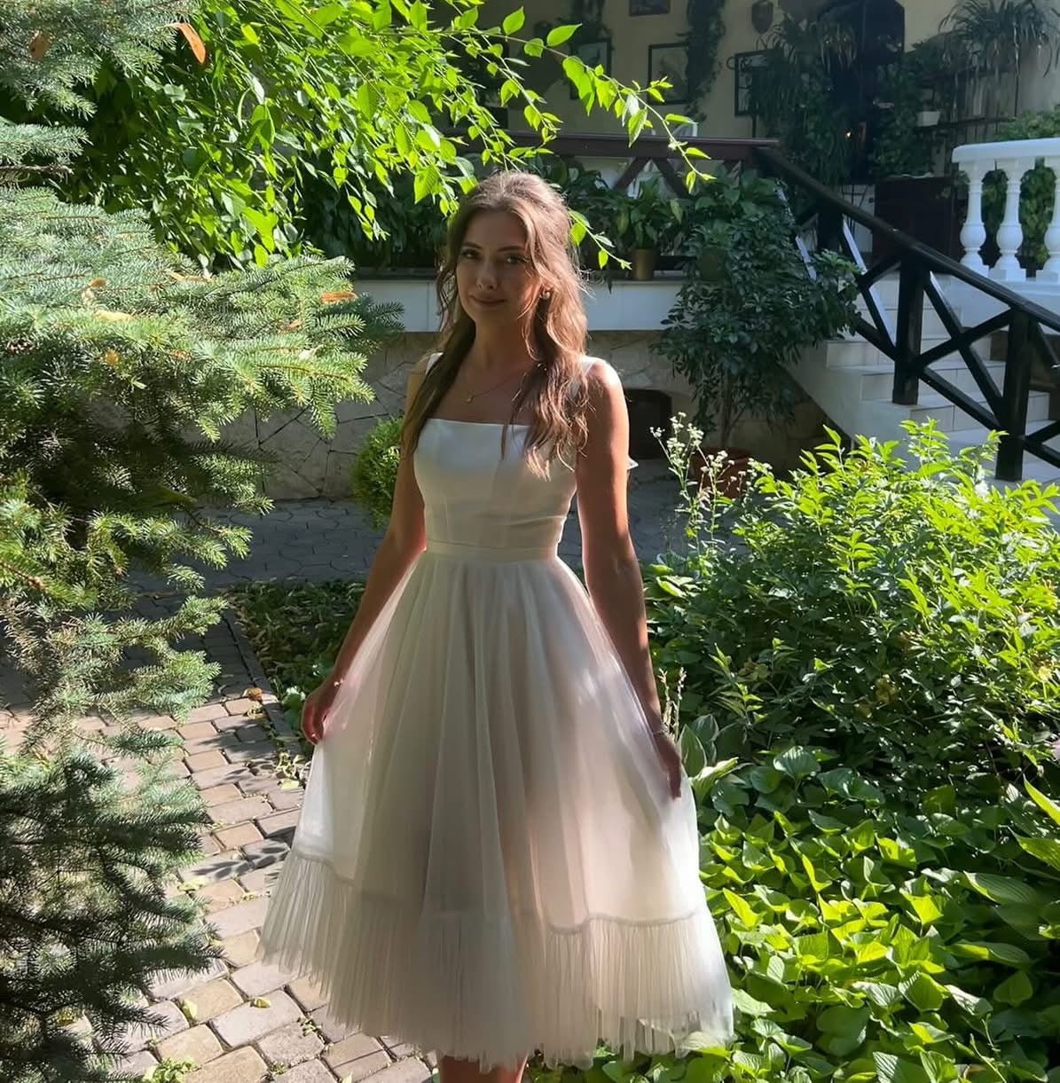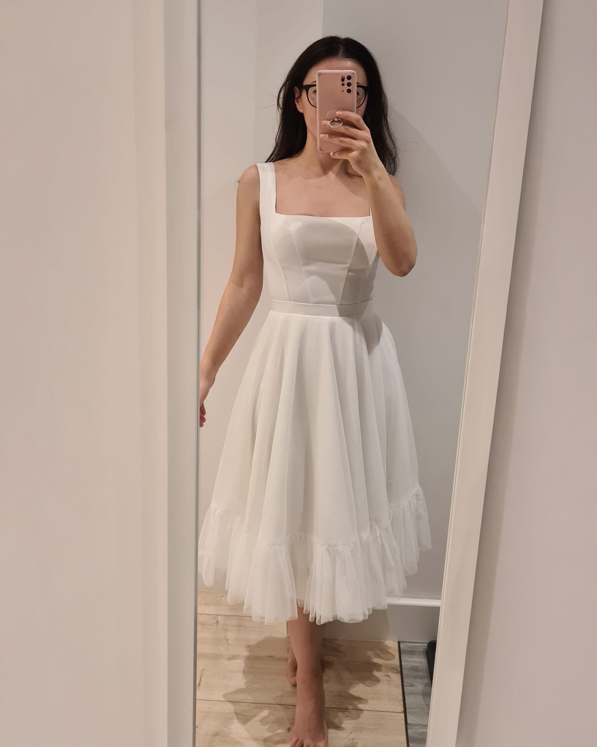 Abito Bianco Midi Elegante da Occasione con Spalline